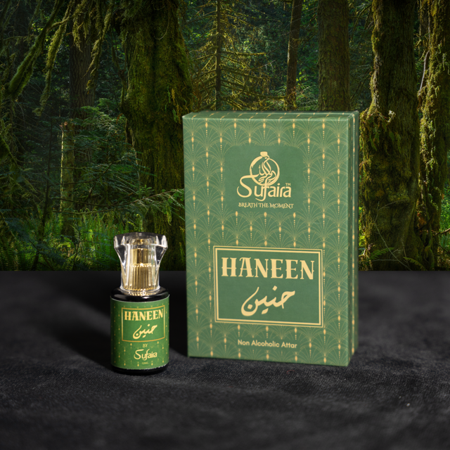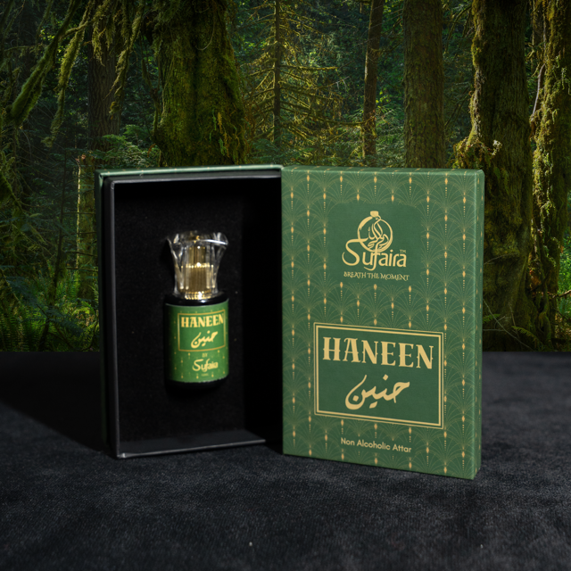 The base lingers with sensual leather, soft musk, and Kashmiri vetiver — raw, powerful, and timeless. Haneen is not just worn — it’s remembered.